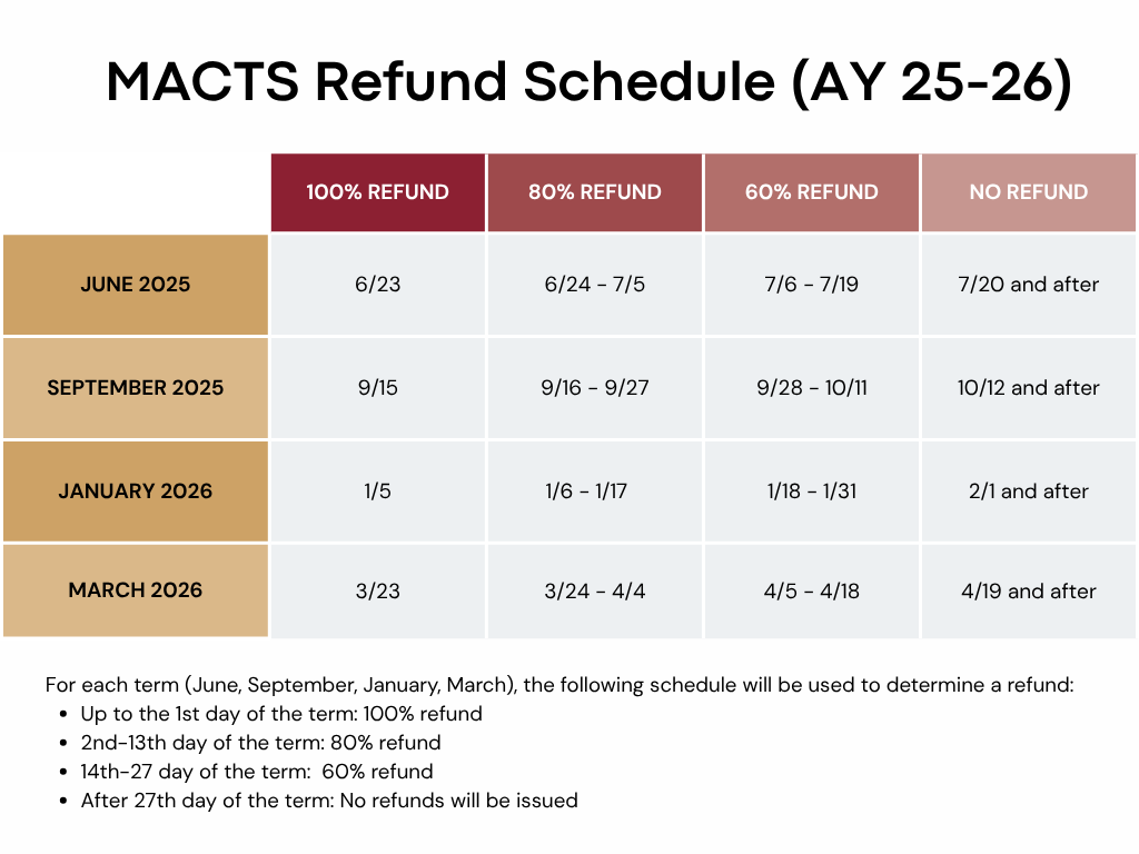 For questions about the refund policy, please contact us by emailing support@online.wts.edu.