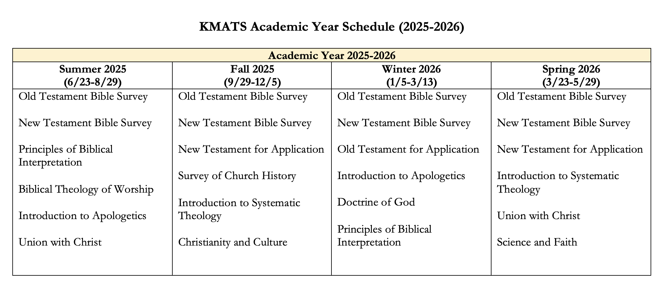 2025-2026 학기별 개강 일정과 과목 일정