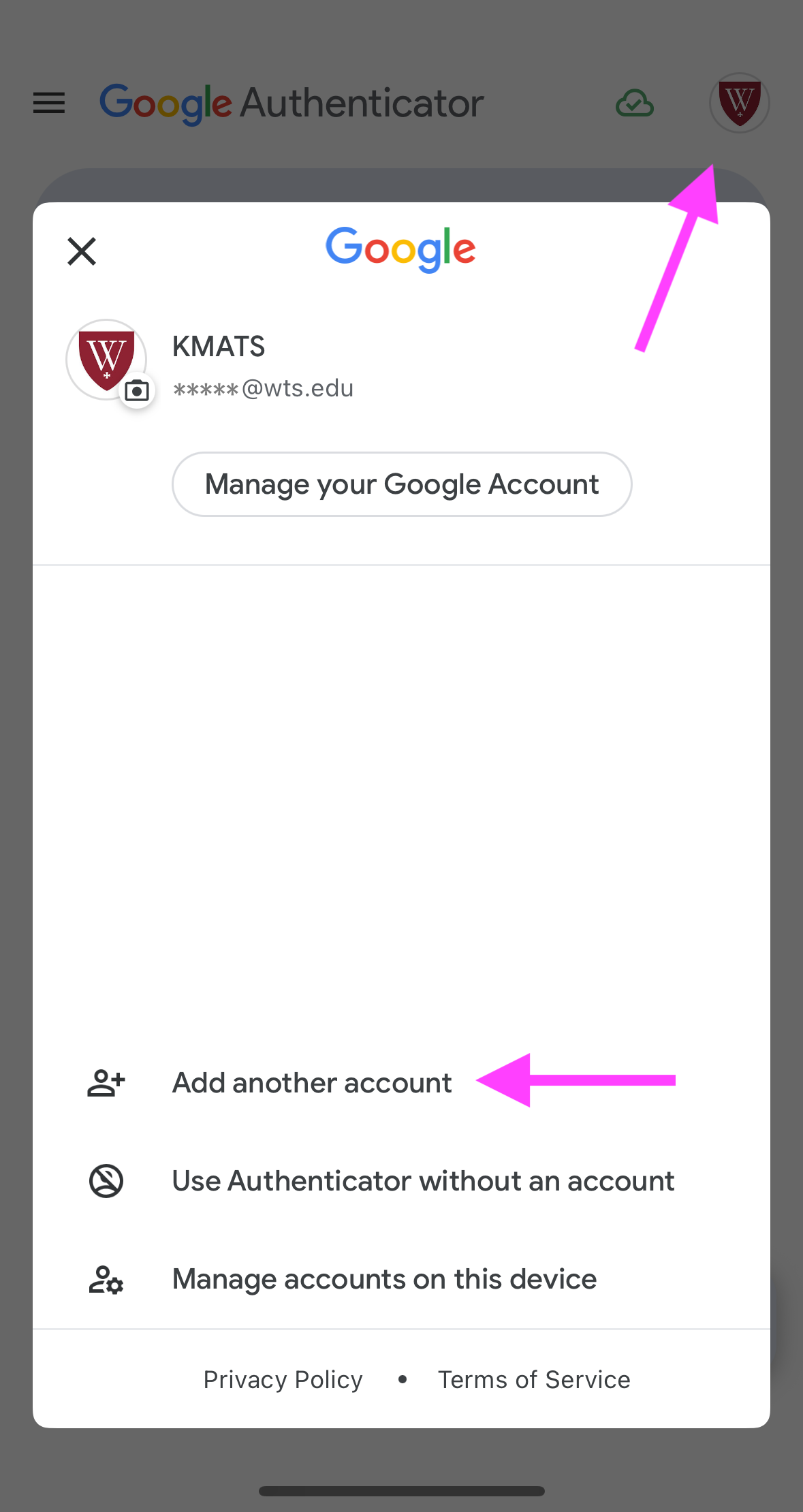휴대폰에 Google Authenticator 앱을 다운로드 한 후 열어서 학생 이메일로 로그인