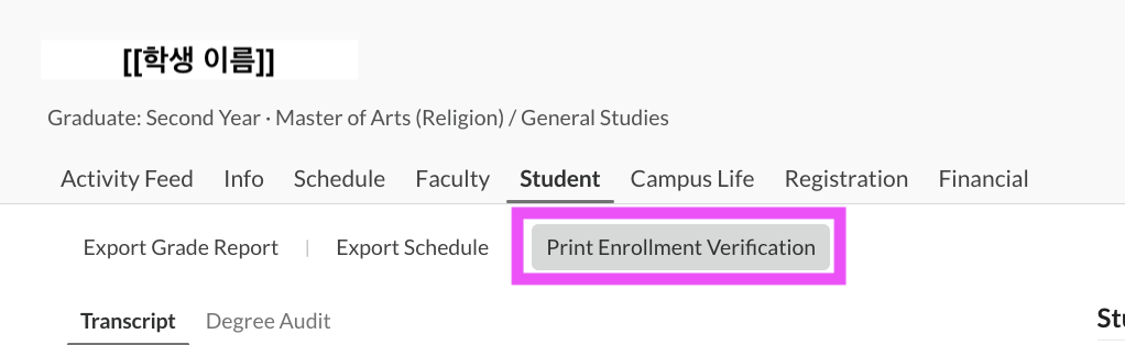 공식 재학 증명서 Official Enrollment Verification