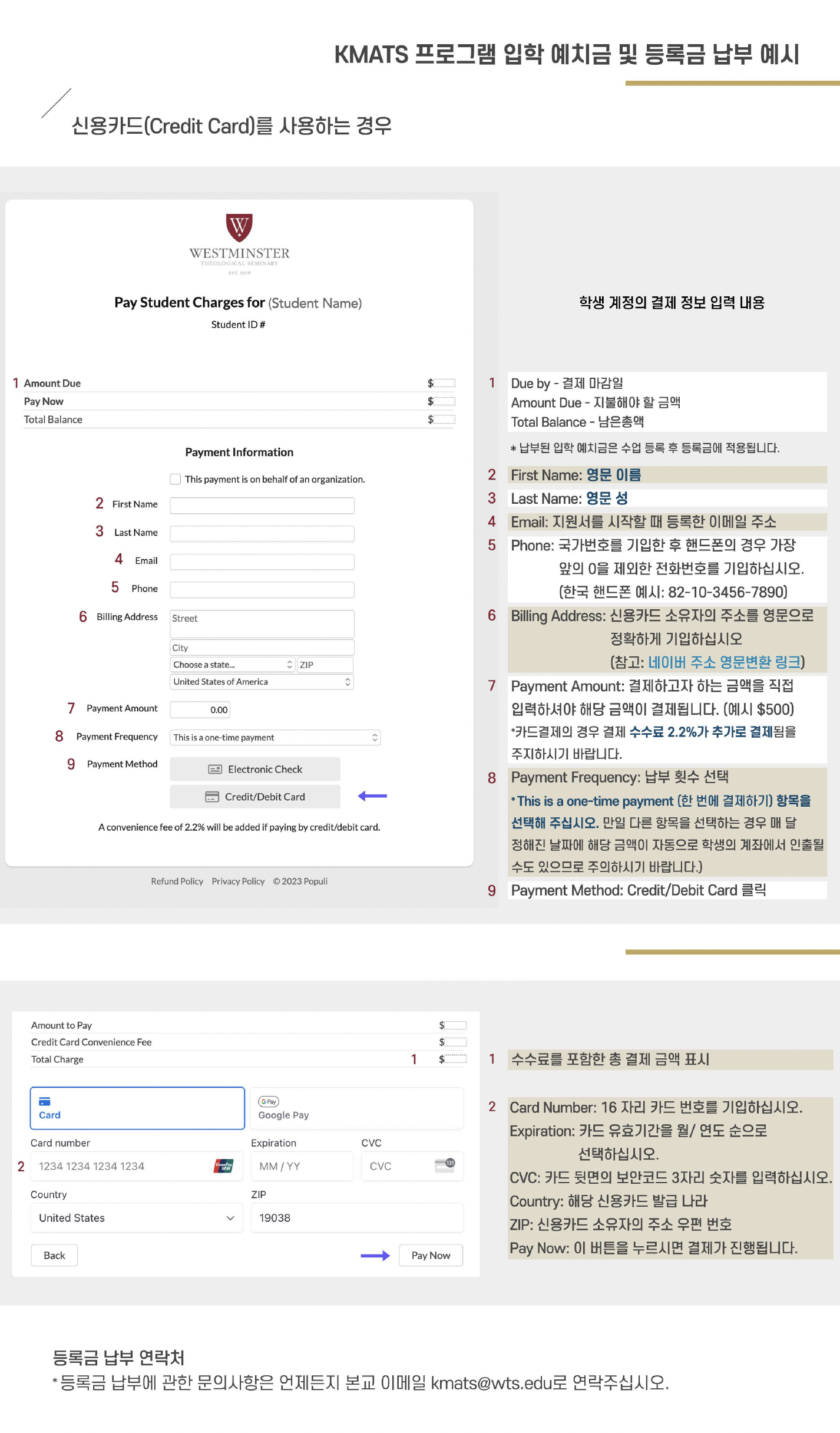 KMATS 입학 예치금 및 등록금 납부 예시_팝퓰리 (신용카드 사용 방법)